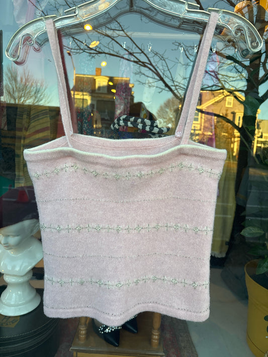 90s discontinued juniors label baby pink beaded knit tank, detachable straps